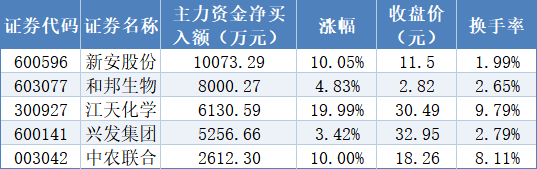 表:4月7日主力資金凈買入額超過(guò)1000萬(wàn)元的草甘膦概念股
