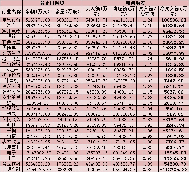 六、截至12月15日申萬(wàn)級(jí)一級(jí)行業(yè)兩融交易情況