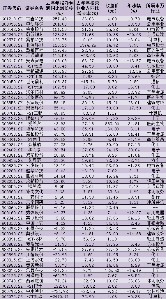 表:54家已公布年報(bào)業(yè)績(jī)的公司情況:
