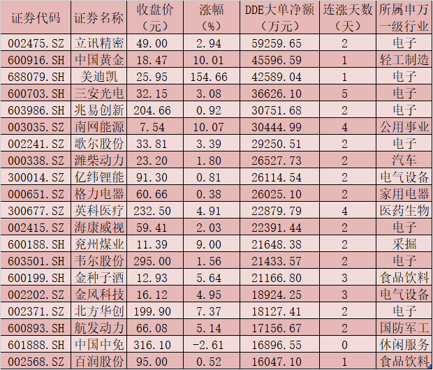 一、周二(3月2日)DDE大單資金凈買(mǎi)入TOP20