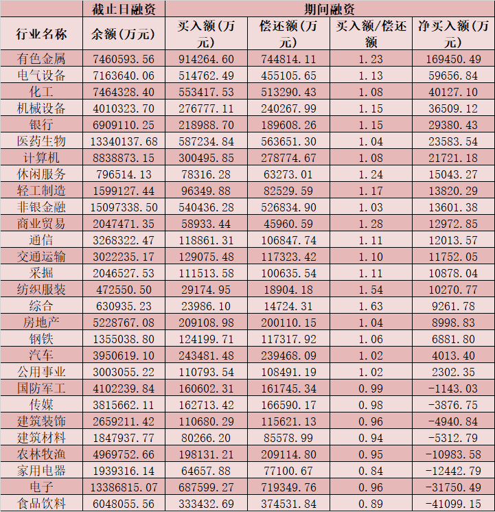 六、截至3月1日申萬(wàn)級(jí)一級(jí)行業(yè)兩融交易情況