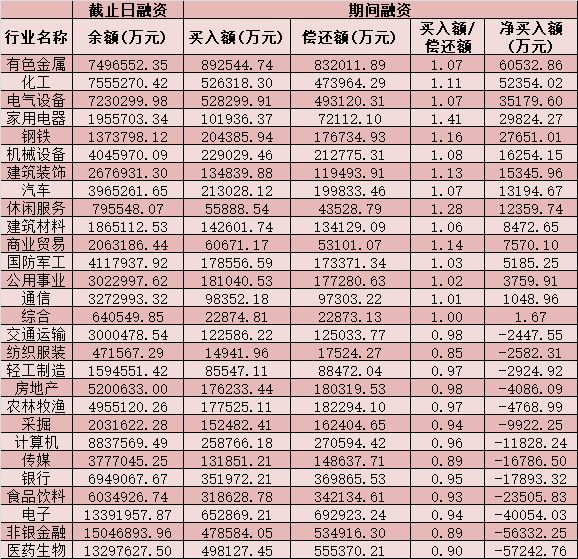 六、截至3月3日申萬級一級行業(yè)兩融交易情況