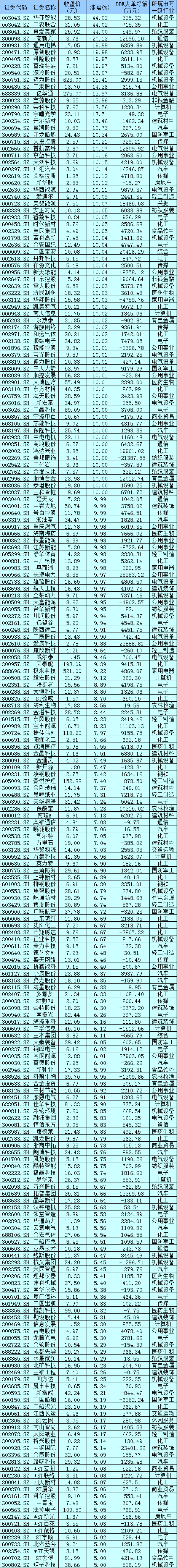 表:4月6日漲幅在5%及以上的個股一覽