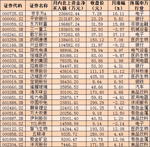 表:4月份以來北上資金凈買入的26只個股情況