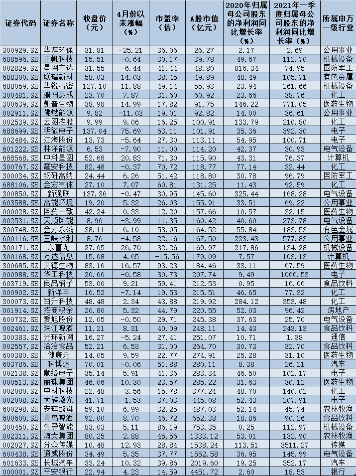 其次,估值處于相對低位。截至4月26日收盤,上述48只個股中有30只個股最新市盈率低于所處申萬一級行業(yè)估值,占比62.50%。林洋能源、天順風(fēng)能、國藥一致、平安銀行、中材科技、云圖控股、凱普生物、佛燃能源、新洋豐等9只個股最新動態(tài)市盈率均低于20倍。
