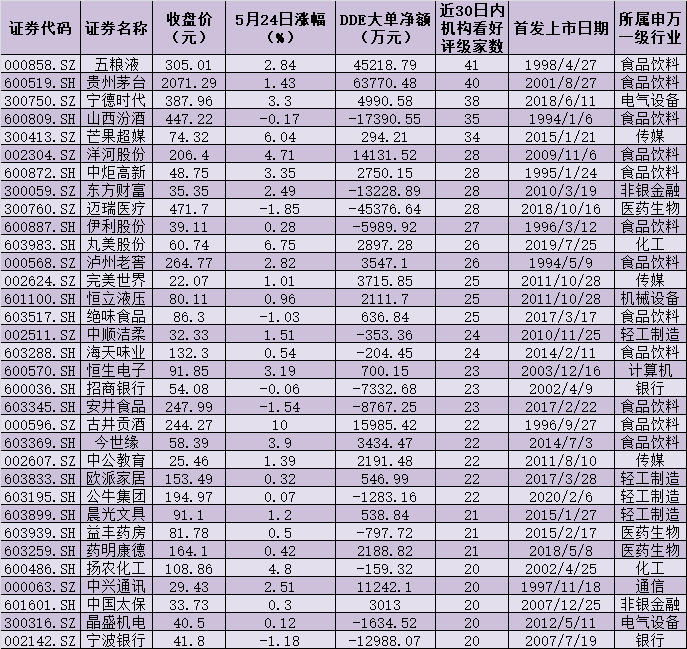 表:近30日內(nèi)機(jī)構(gòu)看好評級家數(shù)在20家及以上富時(shí)羅素概念股一覽
