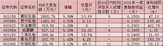表:5月25日實現(xiàn)大單資金凈流入的輪胎概念股