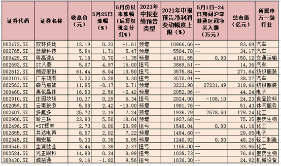 此外,作為“聰明錢”的北向資金也已對(duì)業(yè)績預(yù)喜股進(jìn)行了投資布局,5月份以來,截至5月24日,有48只個(gè)股期間獲得北向資金加倉,合計(jì)凈買入49.44億元,其中,分眾傳媒、旗濱集團(tuán)、達(dá)安基因、立訊精密、森馬服飾等5只個(gè)股期間獲北向資金凈買入均超2億元,分別為8.78億元、8.56億元、4.57億元、4.49億元、2.72億元,合計(jì)吸金29.12億元。