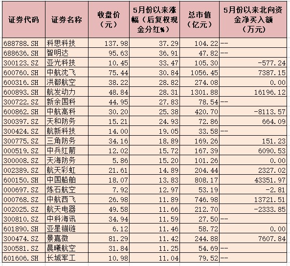 表:5月份以來漲幅超11%國(guó)防軍工股一覽