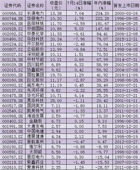 值得一提的是,隨著資本想象空間打開,今年以來碳交易板塊指數(shù)顯著攀升,龍頭股不斷向上拓展高度。截至7月14日,碳交易板塊指數(shù)年內(nèi)累計(jì)漲幅達(dá)到54.52%,26只碳交易概念股實(shí)現(xiàn)不同程度的上漲,占比逾八成,其中,長源電力、華銀電力、岳陽林紙、中鋼國際等4只概念股年內(nèi)累計(jì)漲幅均超100%,分別為234.20%、232.26%、181.67%、147.68%。