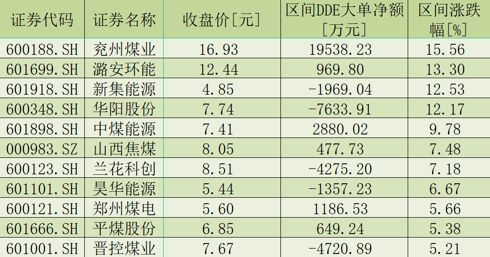 表:7月12日至7月14日煤炭開采加工板塊漲幅超5%個(gè)股一覽