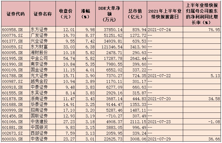 表:8月2日漲幅超3%的券商股一覽