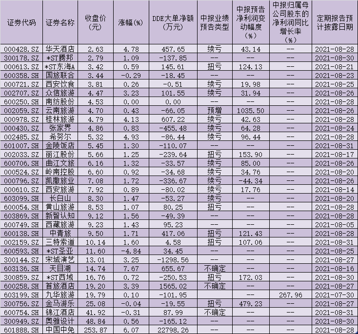 表:8月3日旅游酒店股市場表現(xiàn)一覽
