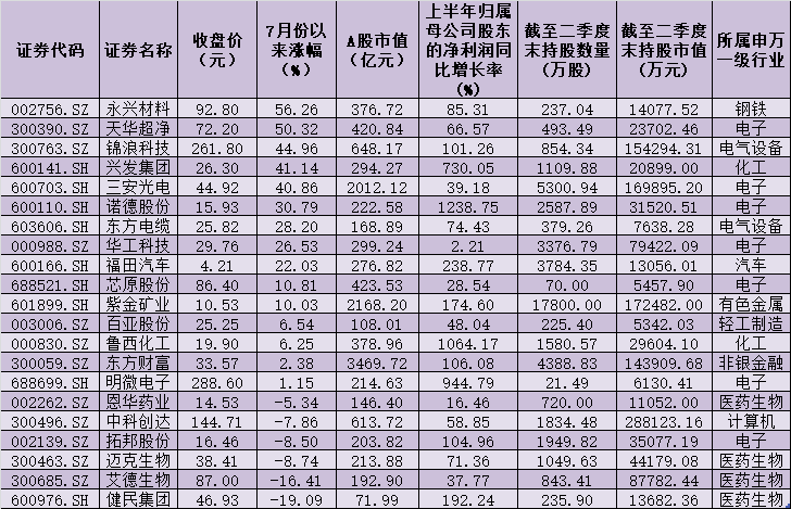 值得一提的是,經(jīng)過此次調(diào)倉(cāng)換股,社?;鹑〉昧溯^好收益。7月份以來截至8月4日,上述21只社保基金新進(jìn)增持股中,有15只個(gè)股實(shí)現(xiàn)不同程度的上漲,占比超七成。其中,永興材料、天華超凈等兩只個(gè)股期間累計(jì)漲幅均在50%以上,分別為56.26%、50.32%。