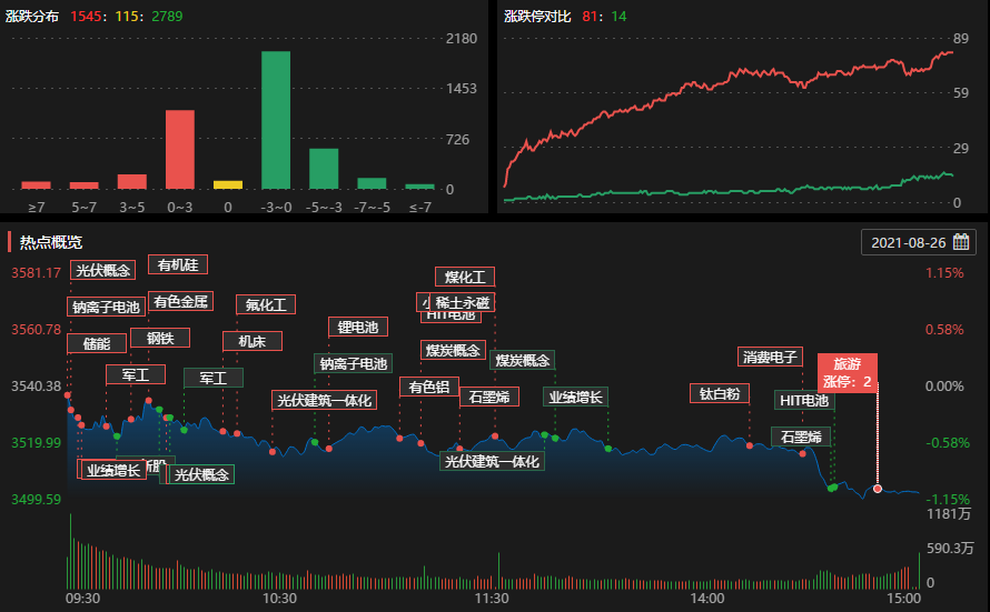 總體來看,兩市個(gè)股跌多漲少。