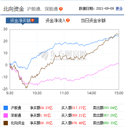 與此同時(shí),北向資金凈買入26.15億元,其中,滬股通凈買入額24.23億元,深股通凈買入額1.92億元。