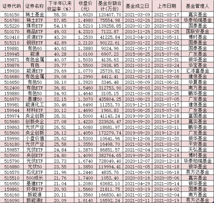 表:下半年以來(lái)收益率超20%的ETF基金一覽