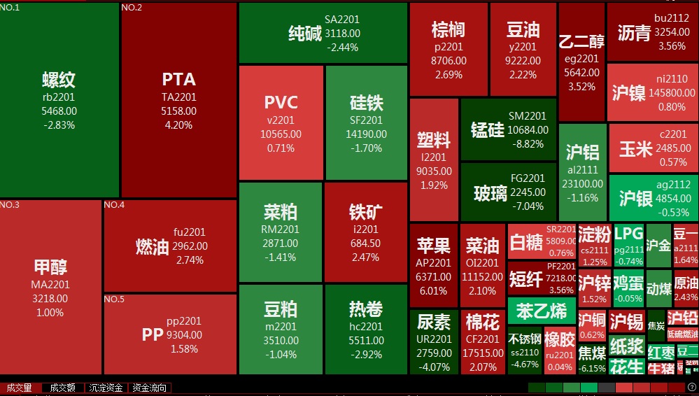 9月24日,國(guó)內(nèi)商品期貨收盤走勢(shì)分化,蘋果主力合約漲停,PTA漲超4%,短纖、瀝青、乙二醇漲超3%,燃油、棕櫚、鐵礦、原油、豆油漲逾2%。玻璃主力合約跌停,錳硅跌超8%,焦炭跌超7%,焦煤跌逾6%,不銹鋼、尿素跌超4%,螺紋熱卷、純堿、硅鐵跌超2%。