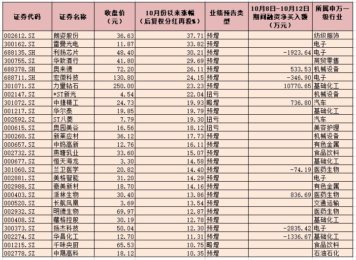 表:10月份以來漲幅超10%的業(yè)績預喜股一覽