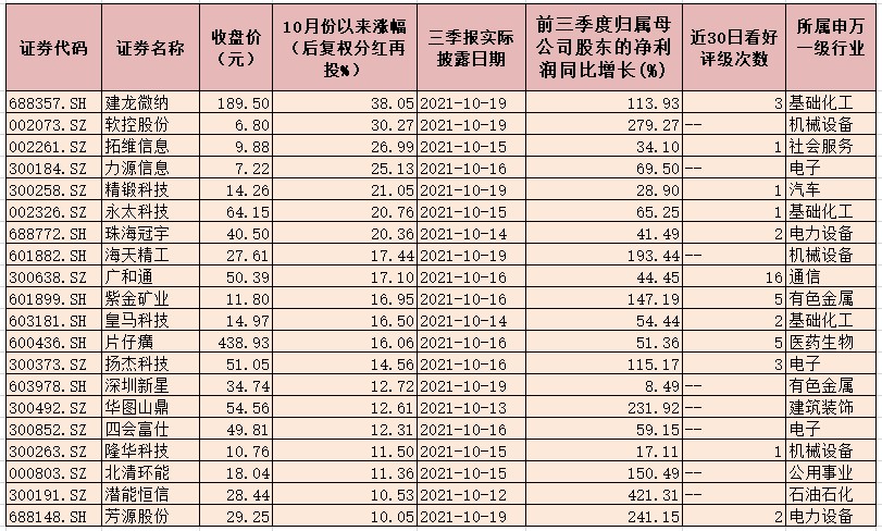 表:10月份以來(lái)漲幅超10%的前三季度凈利潤(rùn)增長(zhǎng)股一覽