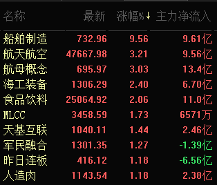 熱點方面,涉軍工概念大漲。