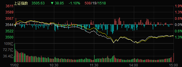 11月2日,A股市場呈現(xiàn)震蕩下行走勢,午后快速探低,滬指一度跌近2%至3500點以下。國防軍工、食品加工、種植業(yè)等多板塊持續(xù)活躍,中船系全天強勢領漲,中船應急午后封住漲停,證券、銀行等大金融板塊走弱,煤炭、鋼鐵等周期股大幅下挫。