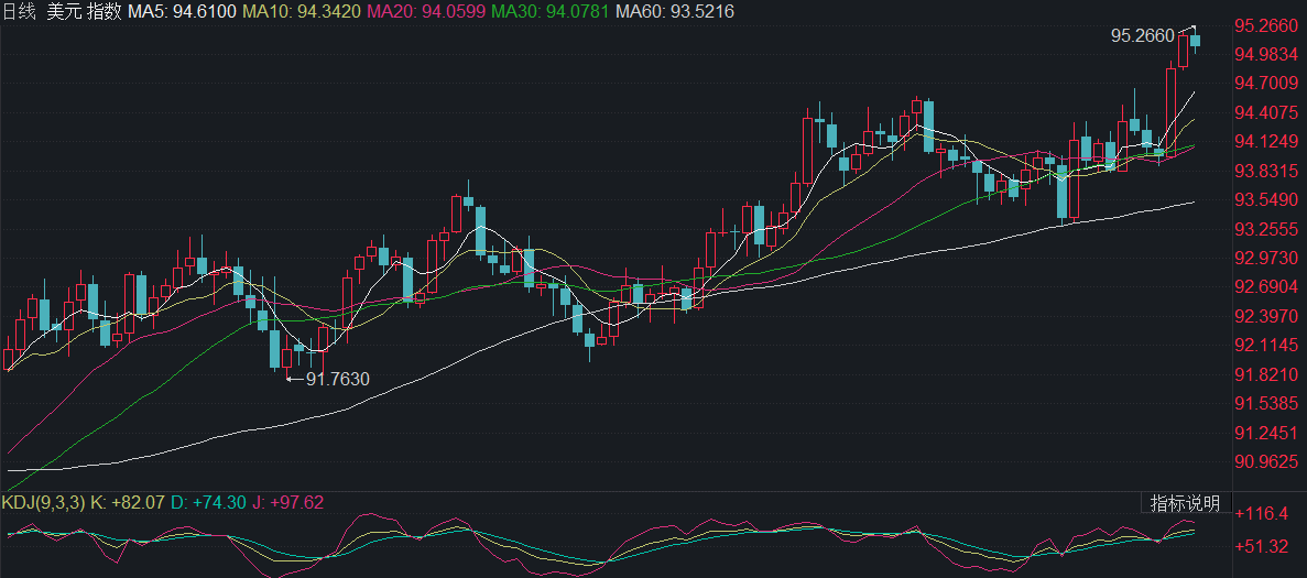 本周美元指數(shù)強(qiáng)勢(shì)上漲0.86%至95.11,創(chuàng)近16個(gè)月新高,實(shí)現(xiàn)周線三連漲,因高通脹令市場(chǎng)押注美聯(lián)儲(chǔ)將提前加息,致使美元不斷走強(qiáng)。與此同時(shí),非美貨幣集體走低。歐系貨幣中,歐元本周跌1.05%,創(chuàng)近16個(gè)月新低,英鎊跌0.63%,創(chuàng)近11個(gè)月新低。商品貨幣中,澳元跌0.92%,紐元跌1.03%,加元跌0.75%。另外日元跌0.42%。