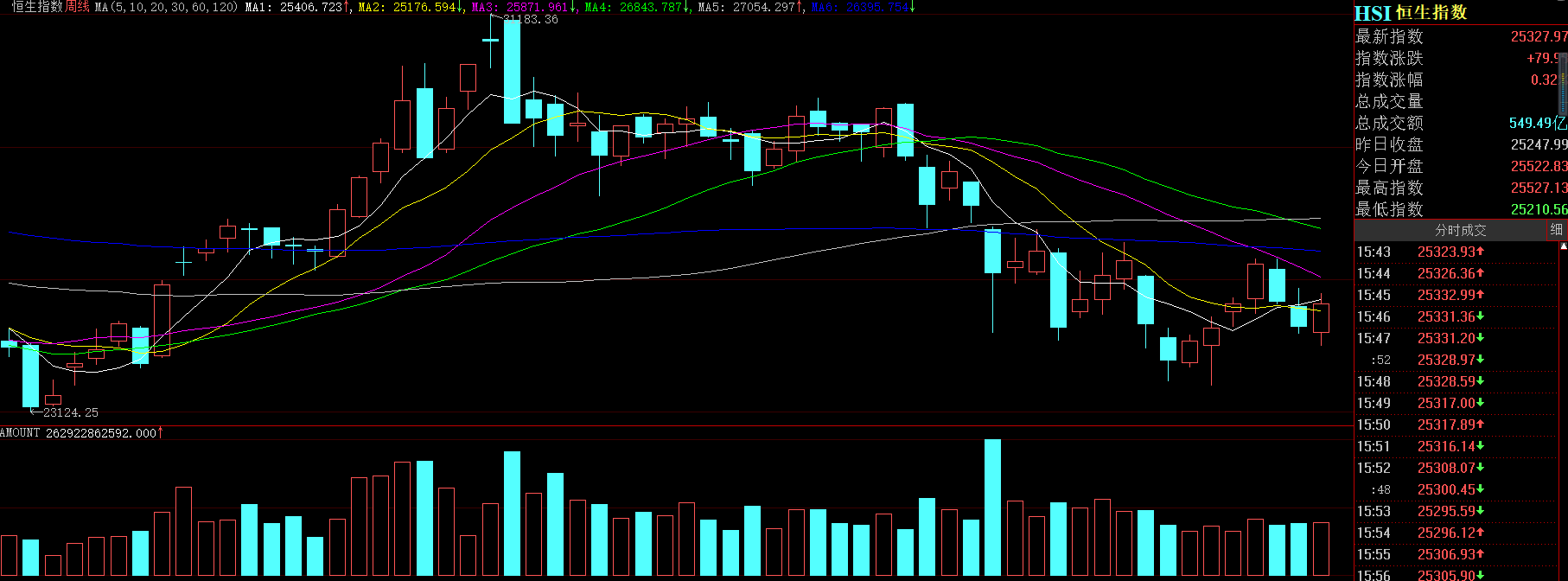 港股市場(chǎng):本周,恒生指數(shù)累計(jì)周漲幅達(dá)1.84%,報(bào)25327.97點(diǎn);恒生科技指數(shù)周漲幅達(dá)4.60%,恒生中國(guó)企業(yè)指數(shù)周漲幅3.33%。