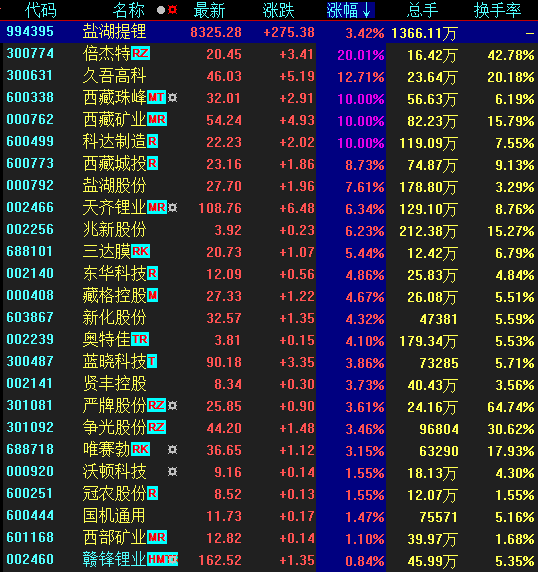 鹽湖提鋰板塊強勢領(lǐng)漲
