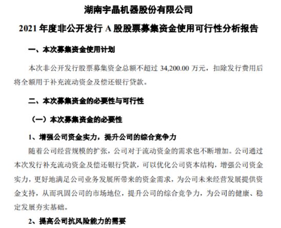 11月15日,宇晶股份公布,擬非公開發(fā)行股票數(shù)量不超過2000萬股,募集資金總額不超過3.42億元(含發(fā)行費用),扣除發(fā)行費用后用于補充流動資金及償還銀行貸款。