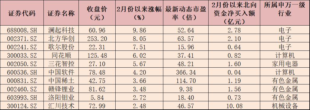 值得一提的是,經(jīng)過連續(xù)4天的凈流出之后,2月9日,北向資金扭轉(zhuǎn)流出態(tài)勢,全天凈買入121.01億元。回顧來看,2月份以來,截至2月9日收盤,北向資金期間累計凈買入117.28億元。
