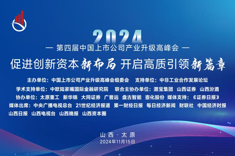 為全面貫徹落實黨的二十屆三中全會和中央政治局會議精神,堅定不移推進(jìn)經(jīng)濟(jì)社會高質(zhì)量發(fā)展,助推戰(zhàn)略性新興產(chǎn)業(yè)成為經(jīng)濟(jì)增長“倍增器”、發(fā)展方式“轉(zhuǎn)換器”和產(chǎn)業(yè)升級“助推器”,中國上市公司產(chǎn)業(yè)升級高峰會組委會、山西資本研究會、山西第一財經(jīng)新媒體平臺《山西資本圈》擬組織召開第四屆中國上市公司產(chǎn)業(yè)升級高峰會。
