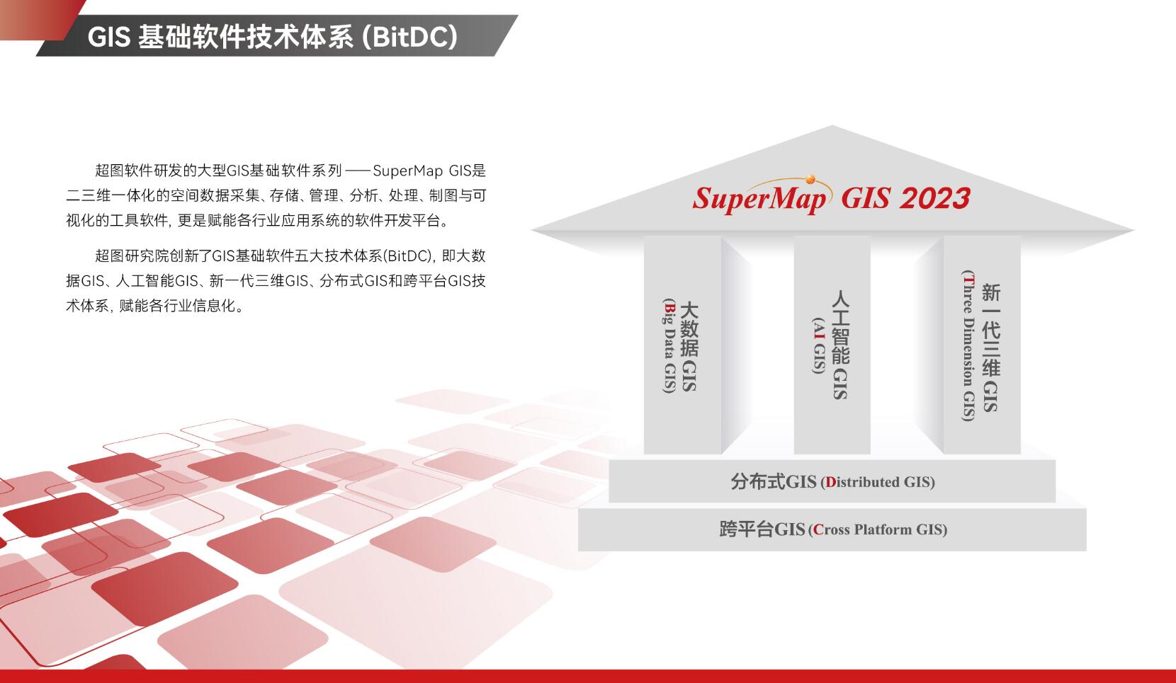 超圖軟件集團成立于 1997 年,由母公司超圖軟件(股票代碼:300036)及旗下的超圖信息、上海南康、南京國圖、北京安圖、上海數慧、超圖國際、超圖駿科、地圖慧、日本超圖等子公司組成,集團正式員工 4000 余人。超圖軟件集團是聚焦地理信息軟件(Geographic Information Software,廣義GIS)和空間智能(Geospatial Intelligence,GI)領域的基礎軟件與應用軟件廠商,是信創(chuàng)、時空大數據、人工智能、虛擬現實等領域的重要參與者,是華為的核心組件供應商。旗下SuperMap軟件是亞洲最大、全球第二大GIS軟件,是數字中國... 詳情>>