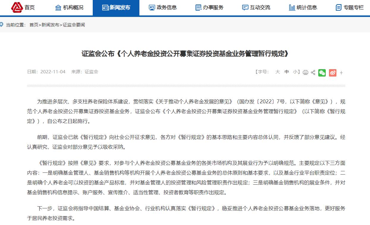 消息面11月4日,人力資源社會(huì)保障部、財(cái)政部、國(guó)家稅務(wù)總局、銀保監(jiān)會(huì)、證監(jiān)會(huì)聯(lián)合發(fā)布《個(gè)人養(yǎng)老金實(shí)施辦法》后,證監(jiān)會(huì)發(fā)布《個(gè)人養(yǎng)老金投資公開(kāi)募集證券投資基金業(yè)務(wù)管理暫行規(guī)定》(以下簡(jiǎn)稱《暫行規(guī)定》),自公布之日起施行。 ...>>詳情
