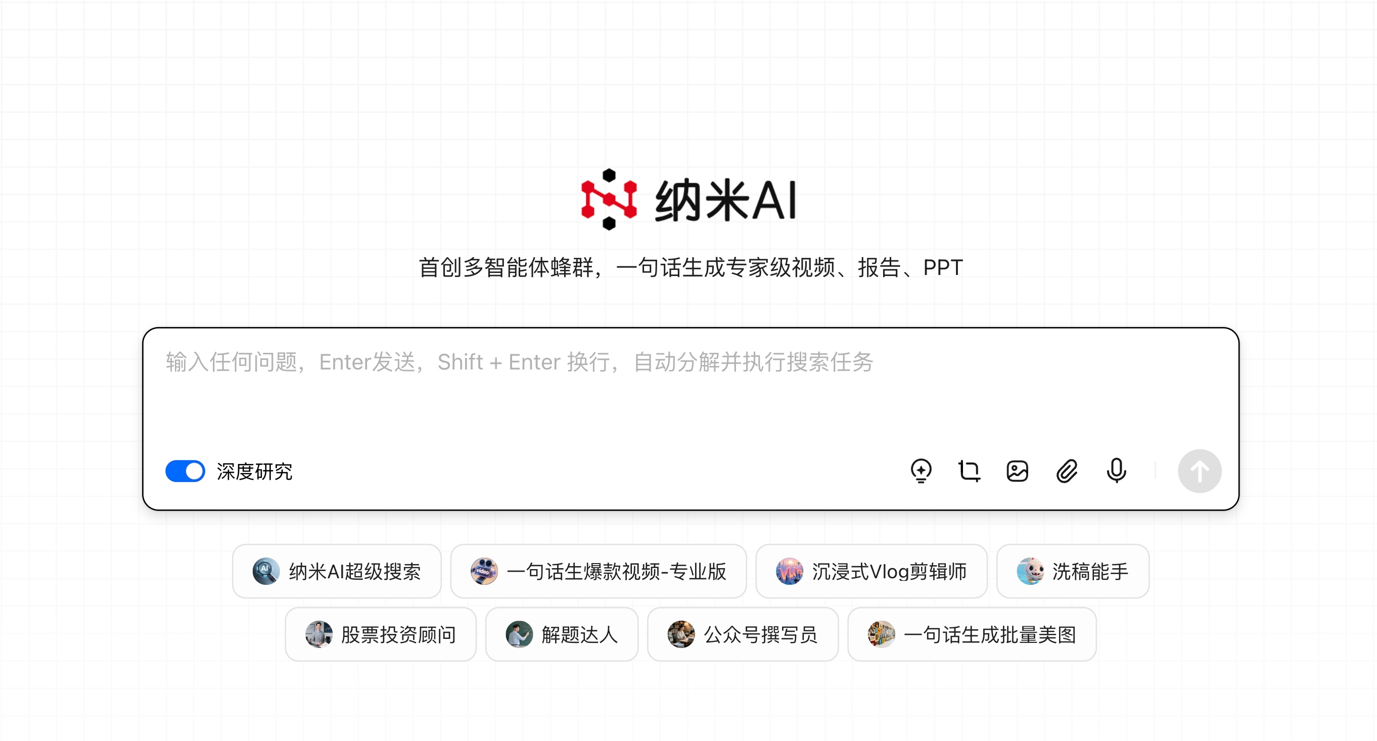 目前納米AI已上線10+類多智能體蜂群,涵蓋視頻制作、內(nèi)容創(chuàng)作、行業(yè)研究、電商帶貨、旅行規(guī)劃等多個場景,由每個行業(yè)的業(yè)務(wù)專家主導(dǎo)定制。