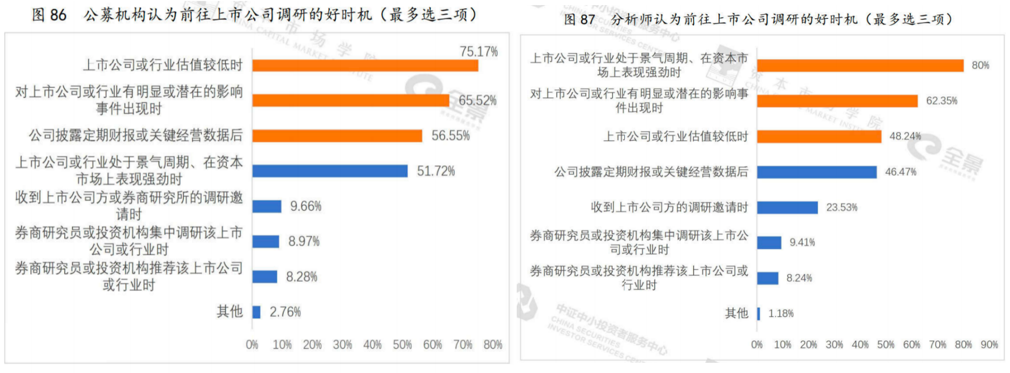 一是善用機構投資者和分析師調研時點的偏好,獲得更多關注。分析師偏好在上市公司或行業(yè)“景氣時”去調研,公募機構偏好在上市公司或行業(yè)“低谷時”去調研,而且兩方都偏好在“上市公司或行業(yè)有重大影響事件時”去調研。