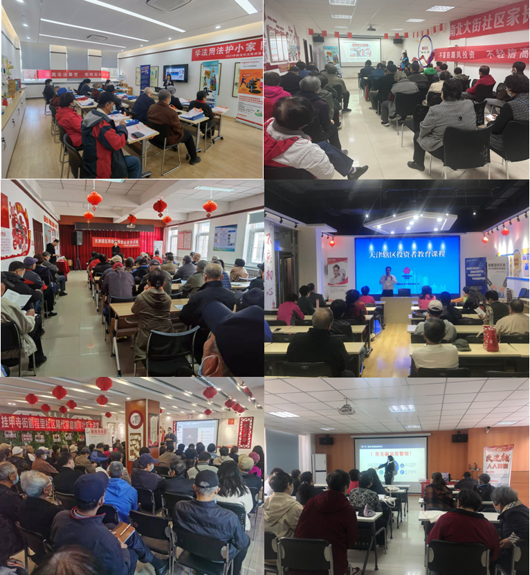 此階段宣傳活動(dòng)以河西區(qū)各街道黨群服務(wù)中心及居家養(yǎng)老服務(wù)中心為工作圓心,以點(diǎn)帶面,從線到片,形成區(qū)域效應(yīng)。通過懸掛宣傳條幅、樹立宣傳易拉寶、張貼宣傳海報(bào)等方式營(yíng)造宣傳氛圍;通過專業(yè)講師授課、發(fā)放宣傳彩頁,播放防范非法集資視頻等方式開展宣傳,引導(dǎo)大家熟知正確投資理財(cái)相關(guān)常識(shí),幫助廣大群眾識(shí)別投資理財(cái)常見誤區(qū),樹立正確投資理財(cái)觀念,提高風(fēng)險(xiǎn)防范意識(shí)和能力。