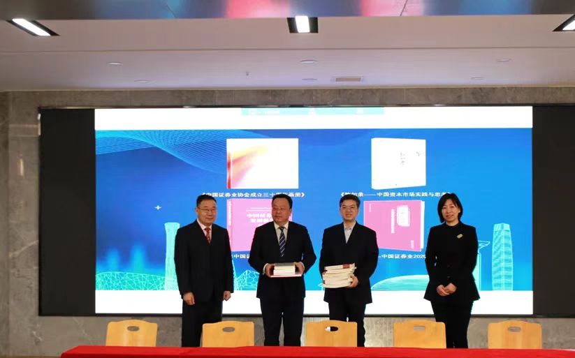 簽約儀式后,安青松書(shū)記代表中國(guó)證券業(yè)協(xié)會(huì)、時(shí)建中副校長(zhǎng)代表中國(guó)政法大學(xué)雙方互贈(zèng)圖書(shū)。
