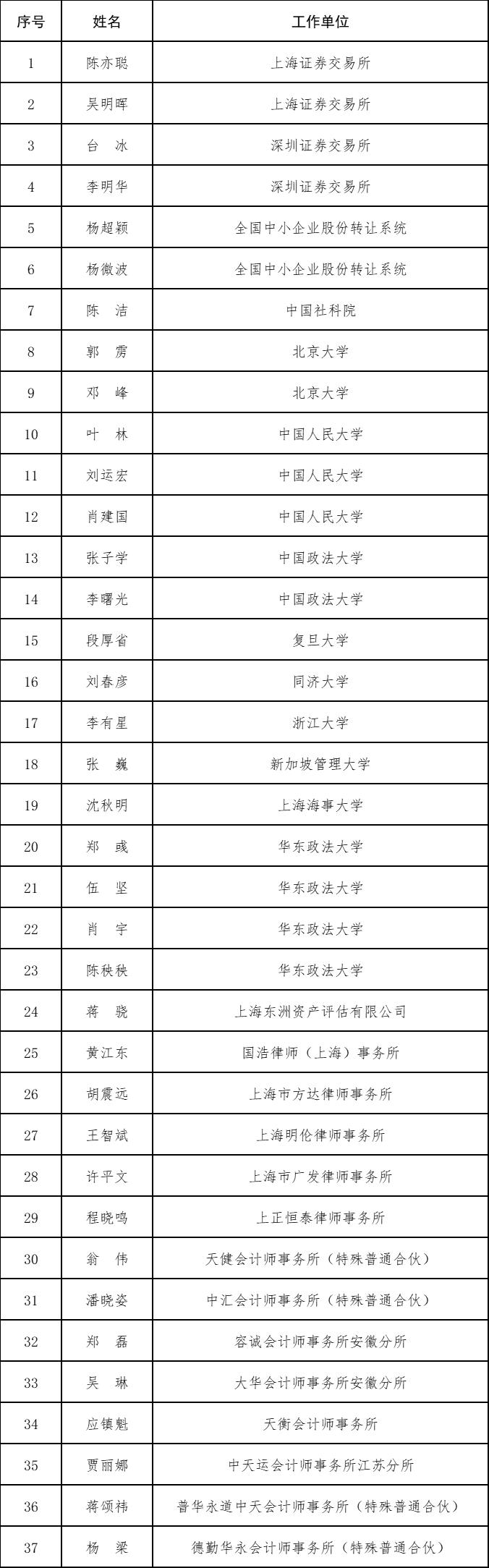 投服中心證券訴訟案件評估專家委員會委員名單: