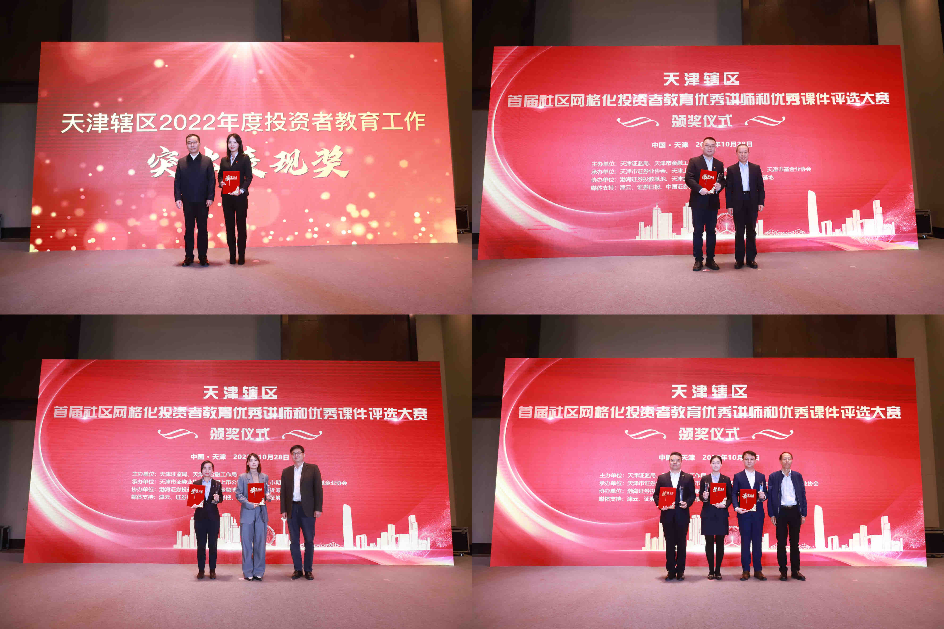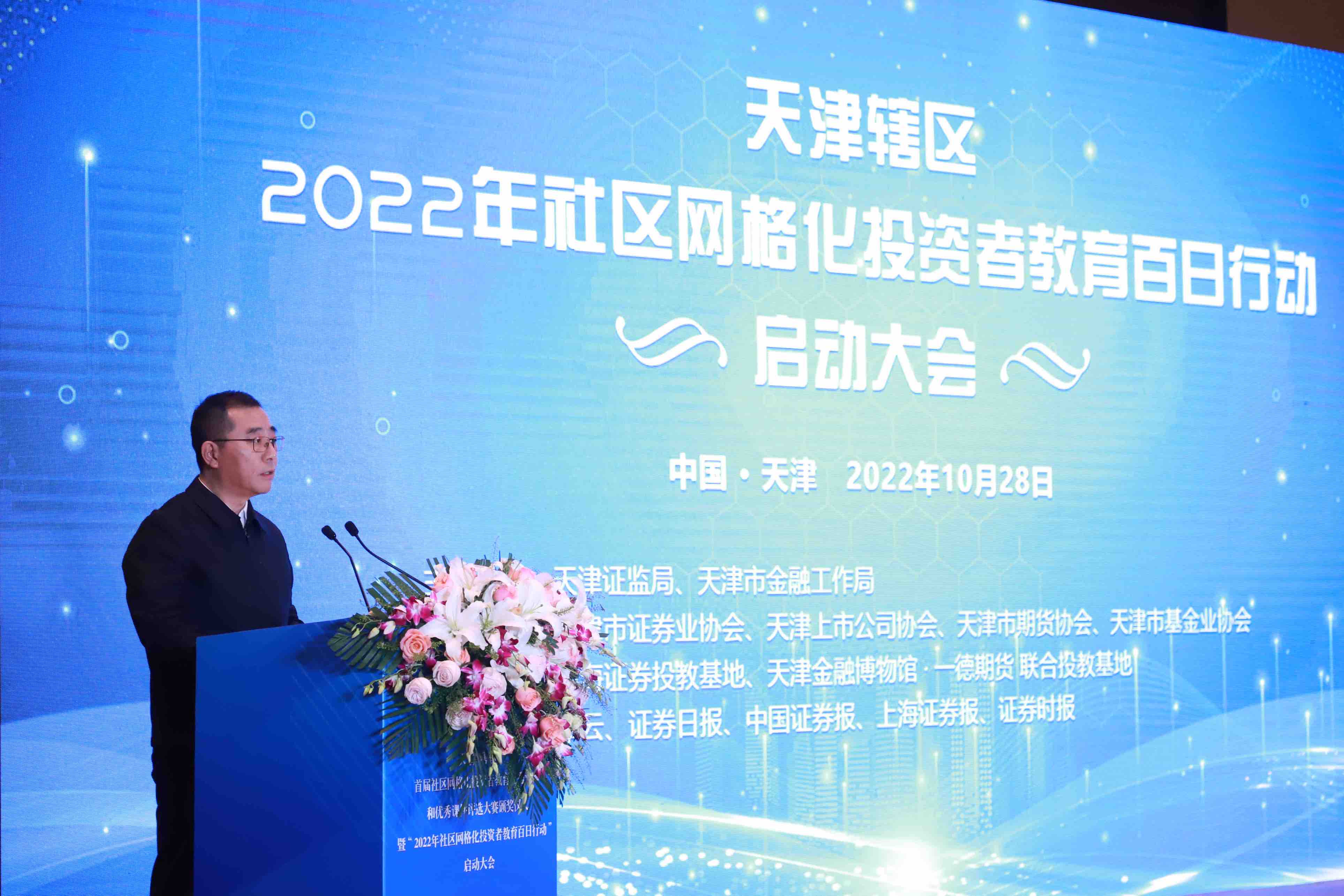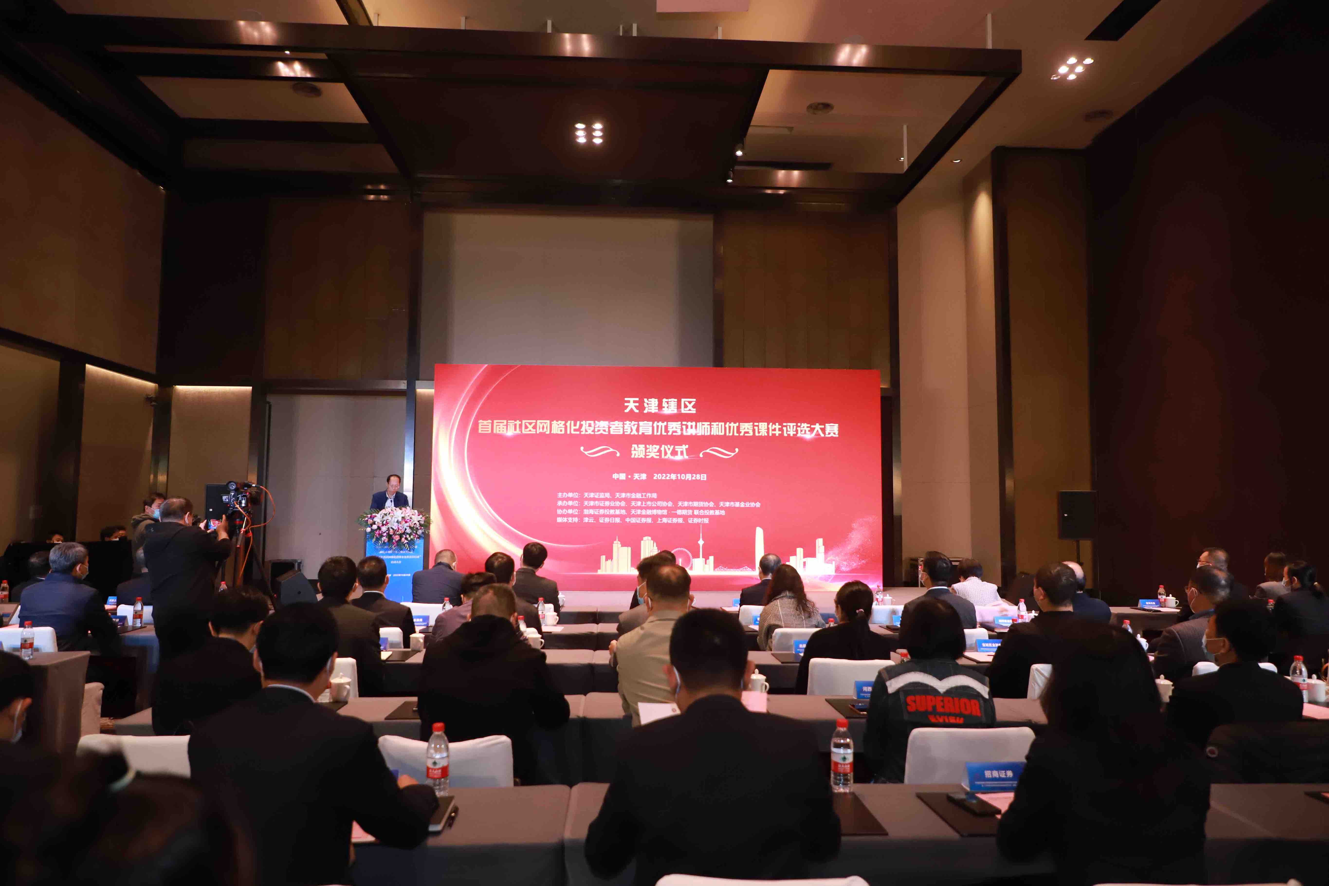 10月28日,天津證監(jiān)局聯(lián)合天津市金融局、天津市政務(wù)服務(wù)辦舉辦大賽頒獎儀式暨“2022年社區(qū)網(wǎng)格化投資者教育百日行動”啟動大會。