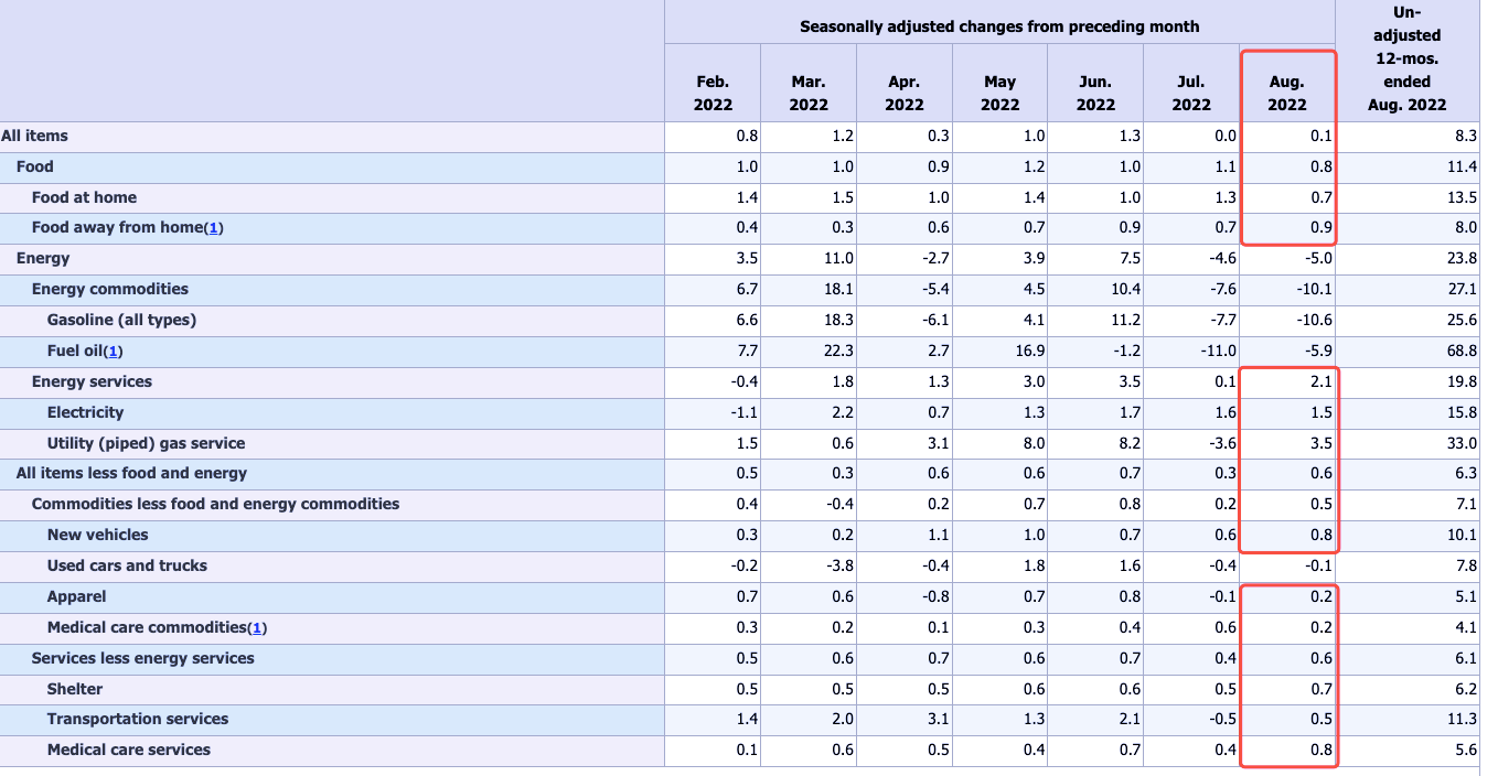 來源:美國8月份CPI數(shù)據(jù)報告