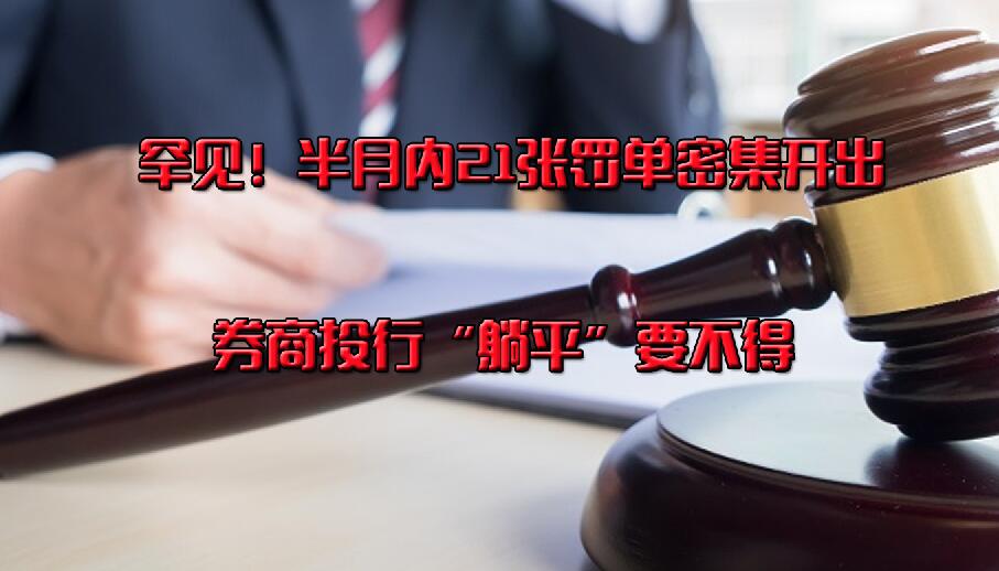 最近,在有關(guān)部門的凌厲行動(dòng)之下,券商投行業(yè)務(wù)正在成為金融監(jiān)管領(lǐng)域的“焦點(diǎn)”。僅半個(gè)月內(nèi),監(jiān)管部門相繼下發(fā)21張罰單“劍指”券商投行業(yè)務(wù),監(jiān)管對(duì)投行處罰的密集程度超乎尋常。[詳細(xì)]